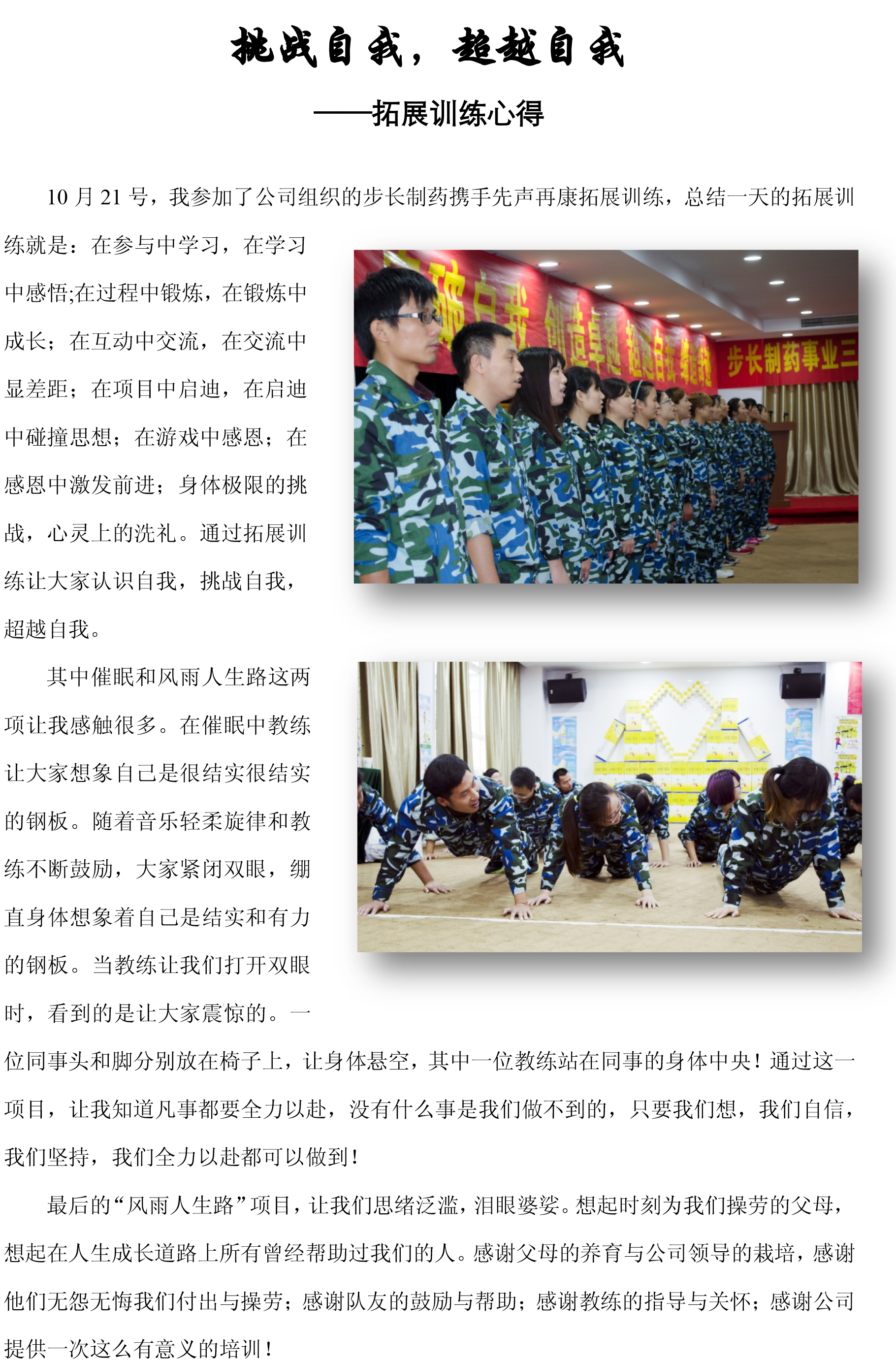 挑战自我,超越自我 ——拓展训练心得