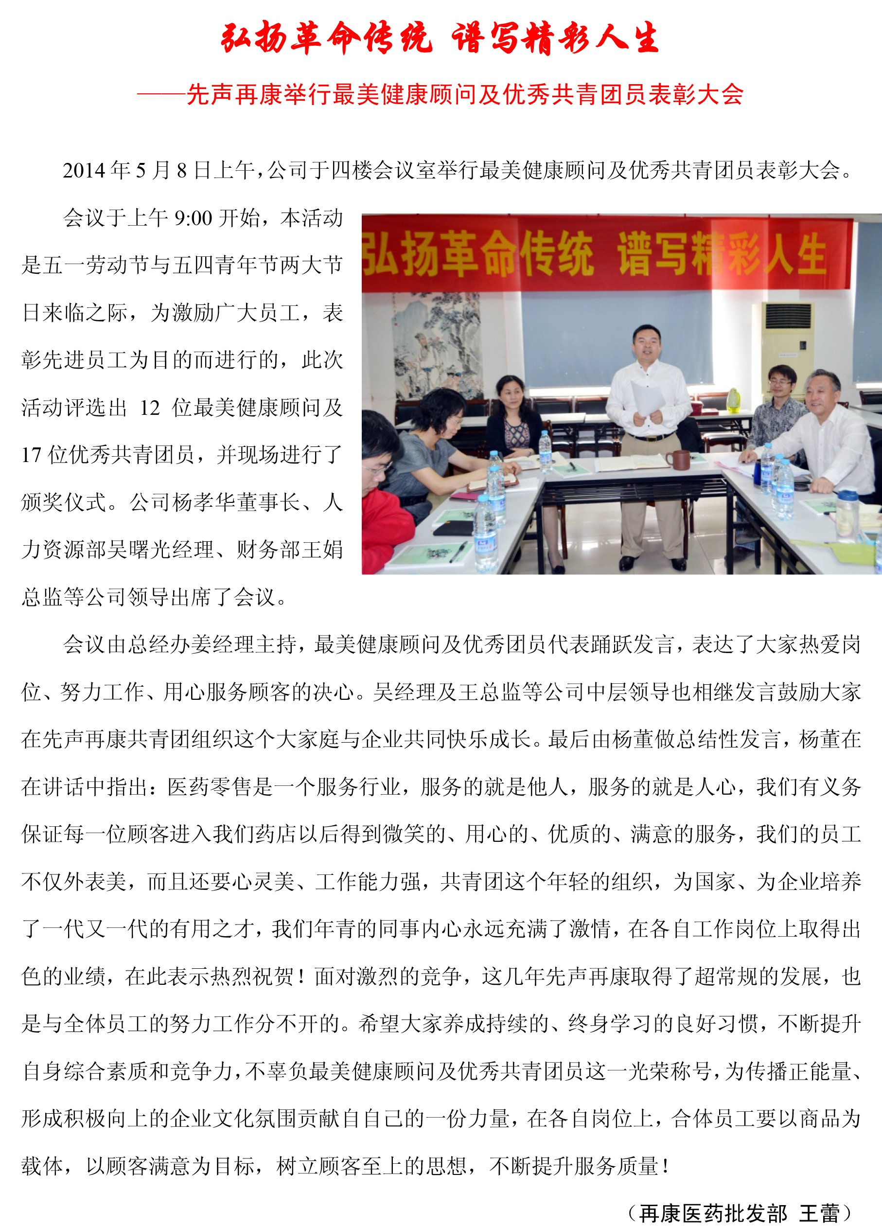 先声再康举行最美健康顾问及优秀共青团员表彰大会