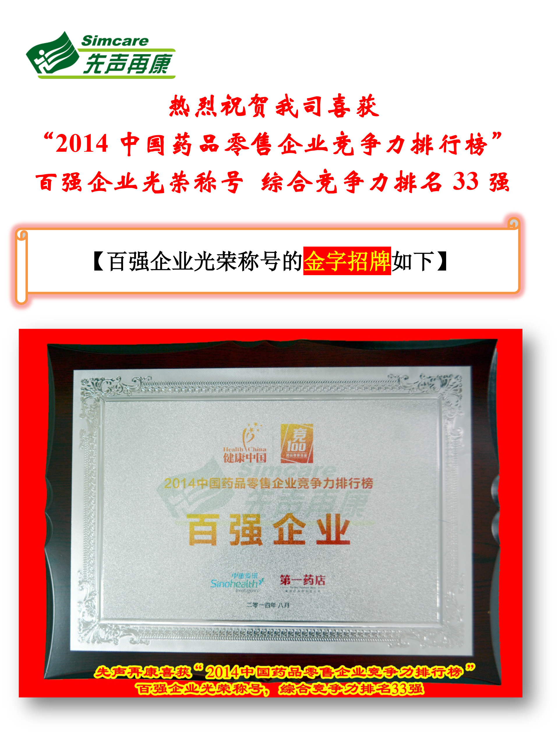 热烈祝贺我司喜获百强企业光荣称号 综合竞争力排名33强