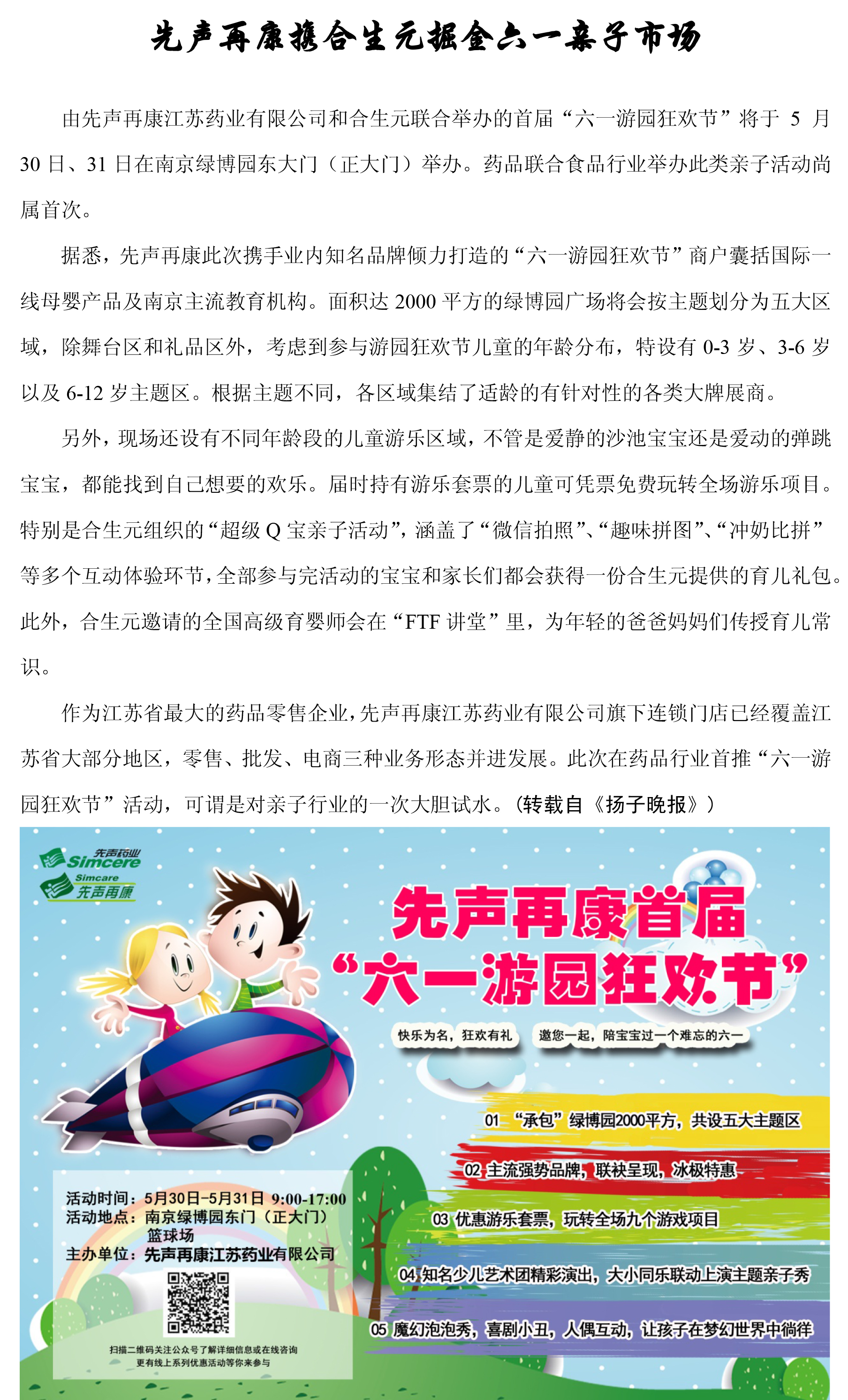 先声再康携合生元掘金六一亲子市场