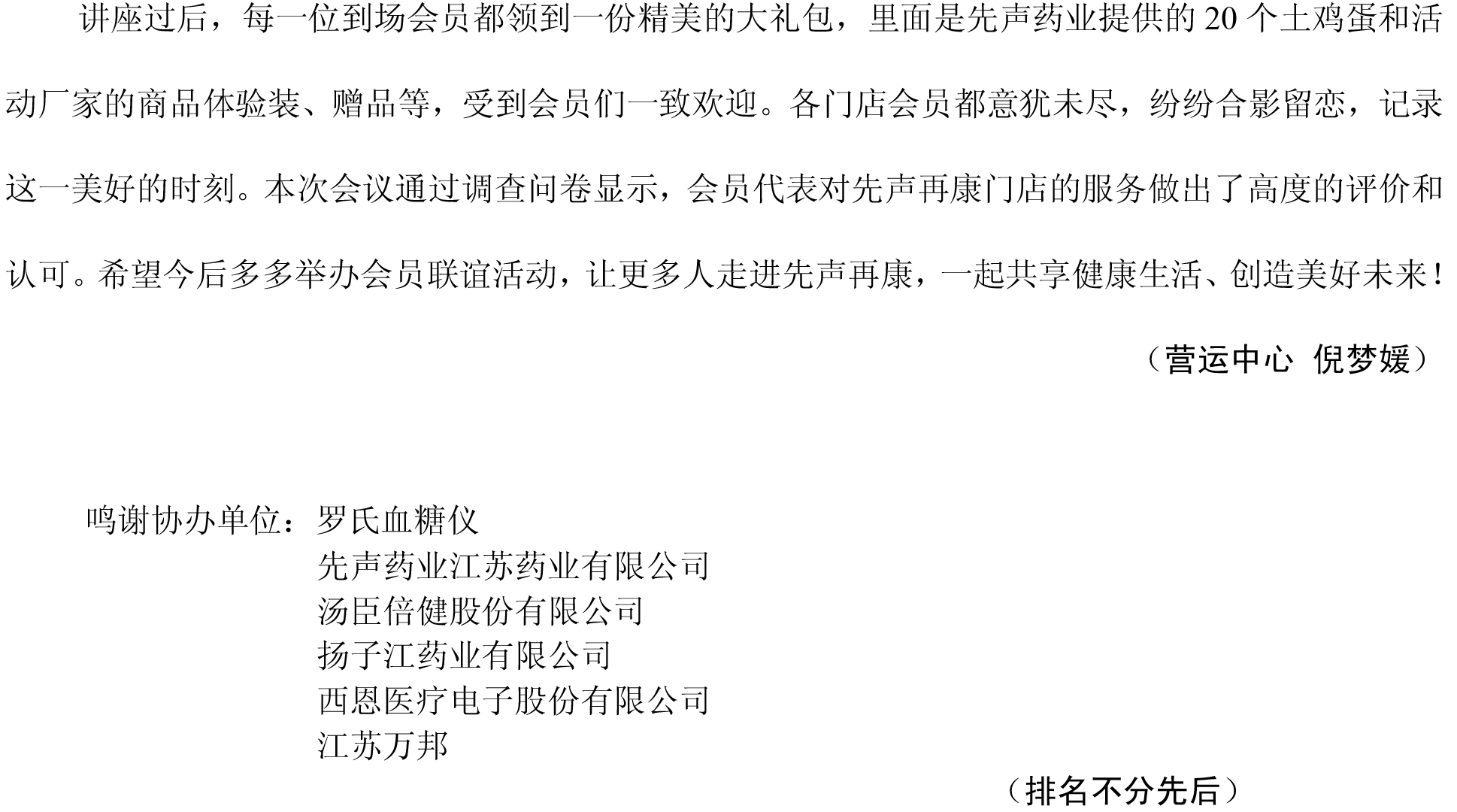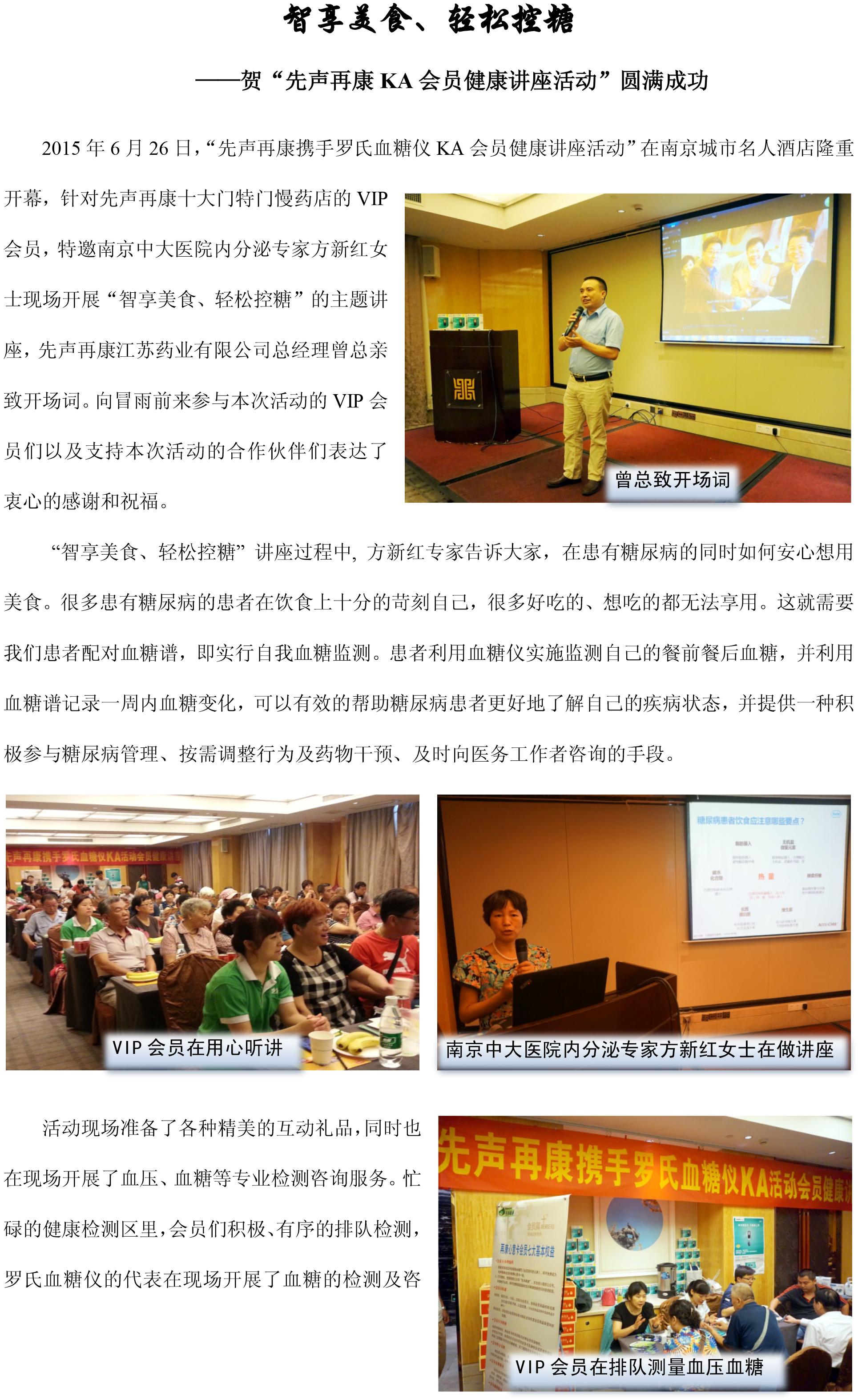 贺“先声再康KA会员健康讲座活动”圆满成功