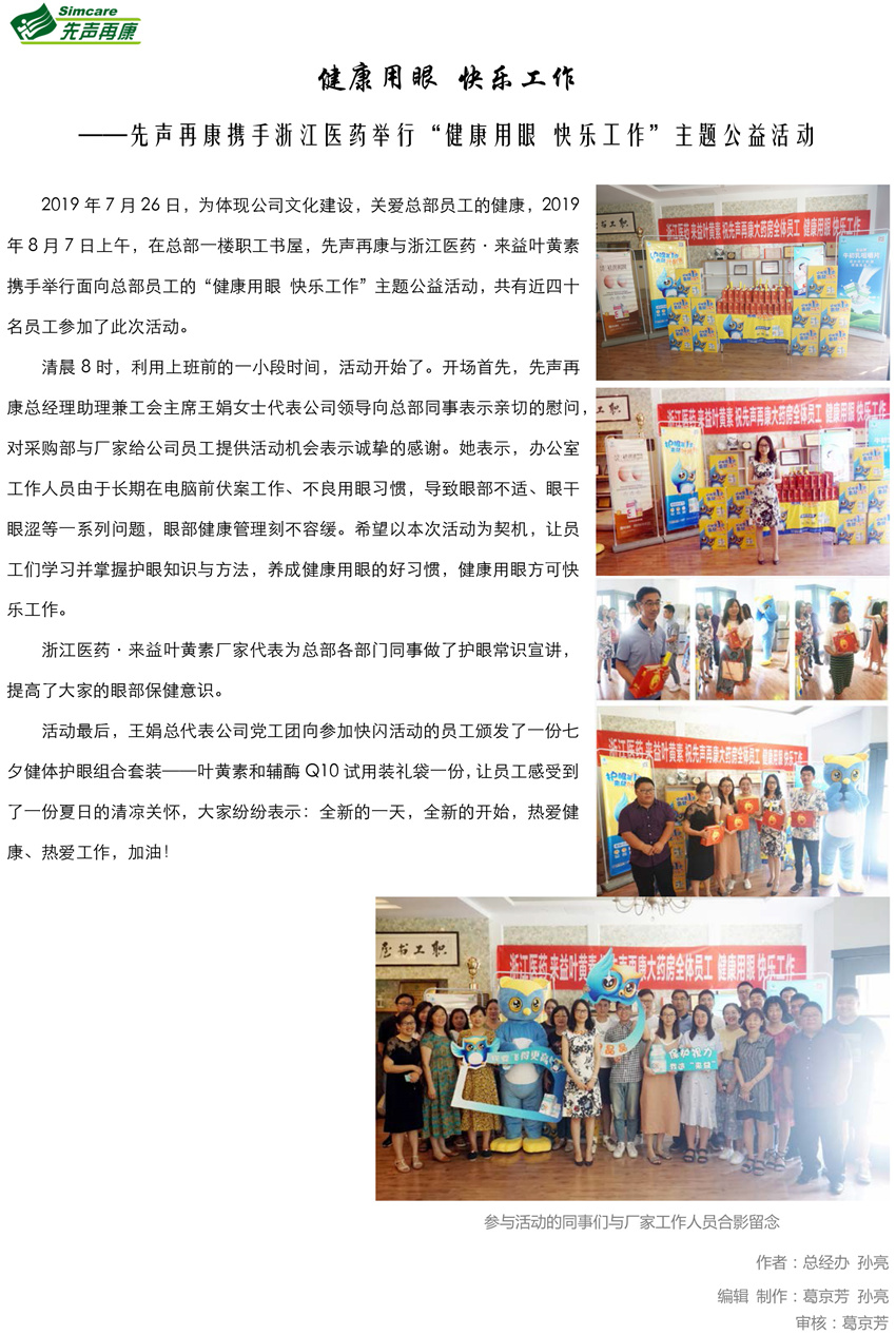 健康用眼 快乐工作|先声再康携手浙江医药举行“健康用眼 快乐工作”主题公益活动