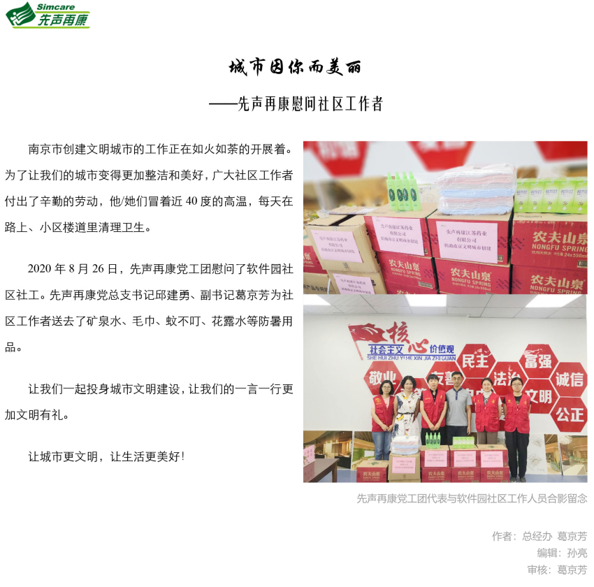 城市因你而美丽|先声再康慰问社区工作者