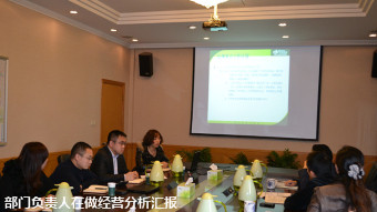 在会议上,采购部、商品部、营运中心、门管中心、财务部、批发部分管领导就2013年度一季度经营情况做了汇报分析。任董、杨董分别给予以了回馈。