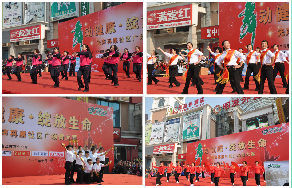 这场老百姓自己的健康盛宴,作为先声再康12周年庆的惠民活动之一,得到了南京各大媒体及社区舞蹈艺术家们的大力支持,初期报名参赛的社区舞蹈队80余支,涉及大小近50余个社区。决赛现场除了各支参赛队精彩的表演外,《先声艺术团》的专业舞蹈演员们还为广大市民带来了精彩的歌舞,同时中国戏剧影视剧作家、国家一级导演王刚老师,中国戏剧表演艺术家、国家一级演员俞燕霞老师还带来了生活小品为比赛助阵!